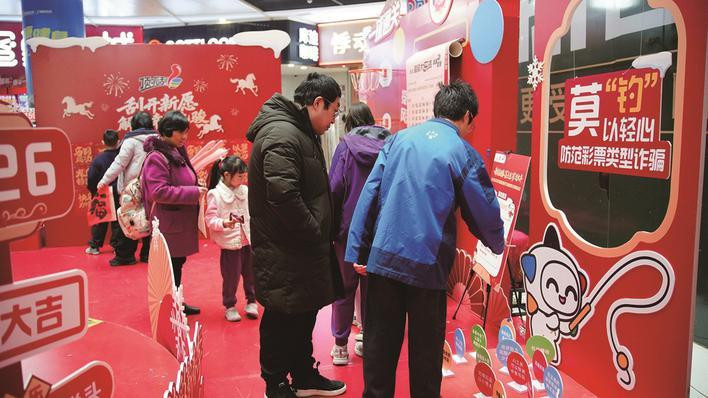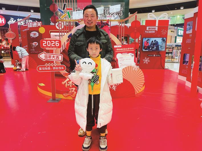 约80平方米的体彩“快闪”空间内,红灯笼、福字、骏马元素与体彩标识等交相辉映,构筑起一个年味十足的互动天地,吸引了众多市民家庭前来参与、体验。