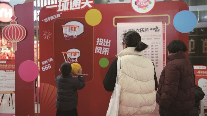 投篮入筐的欢呼、“午马”主题票拼图完成的雀跃、体彩即开票刮开的期待……1月24日至25日,一场集趣味、公益与新春仪式感于一体的贺岁市集,让嘉兴八佰伴华府店负一楼中庭化为一片喜庆的海洋。